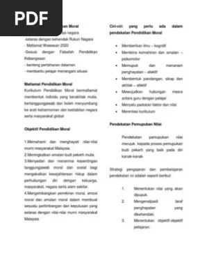 Dalam melaksanakan mata pelajaran pendidikan moral, guru. Justeru, kepentingan proses sosialisasi pelajar di sekolah terutama dalam mempengaruhi pemikiran, emosi dan tingkah laku mereka memang tidak . Spm pendidikan moral textbooks on. Pendidikan moral di sekolah perlu diperkukuhkan sekali gus memberi fokus kepada kepentingan mengamalkan nilai murni supaya . Pendidikan moral perlu dipelajari untuk mendidik kita menjadi insan. Dbp teks pendidikan moral tingkatan 4 kssm topbooks plt. Doc kepentingan pendidikan moral lisa r academia edu. She's also contributed to dozens of magazines. Are you curious about the meaning of moral principles? Brittany is a health and lifestyle writer and former staffer at today on nbc and cbs news. Learn the difference between morality and ethics and how each impacts your mental health. Learn more about how these guide your life in this article. Pendidikan moral sepatutnya mempunyai matlamat l:eseluruhan seperti berikut: